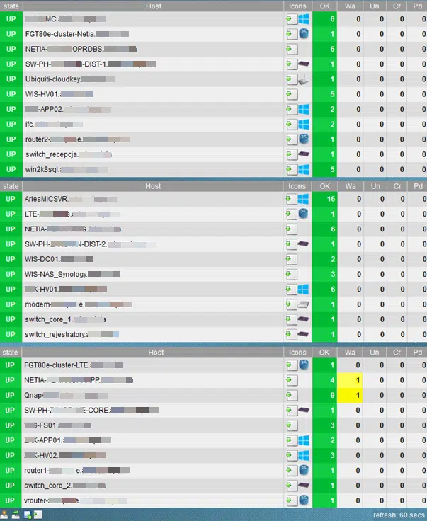 After implementation, the server monitoring system was fully functional. The IT team could monitor servers in real time and receive notifications when alarm thresholds were exceeded. This allows technical staff to quickly respond to critical situations and minimize service downtime. Additionally, thanks to the established VPN connection, the networking department was able to add the IP addresses of all devices on the network to monitor their parameters.