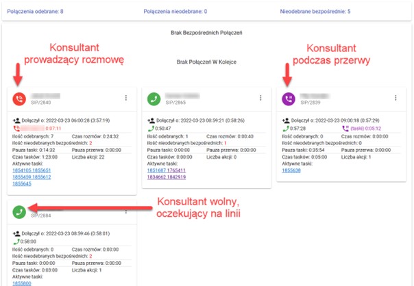 We manage Direct Call calls by routing calls to the agents with the longest idle time. If the agent doesn't answer within a specified time, we place the call in a queue – the phone rings for all logged-in agents. We manage breaks (free time or time spent handling requests in the service application). Most importantly, thanks to VoIP, everything is done remotely. Consultants perform helpdesk work from their homes and use softphones, connecting via VPN to the Asterisk system.