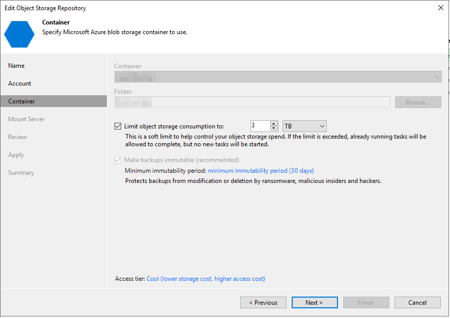 On the Veeam Backup & Replication side, we added a new "Object Storage" repository. During configuration, we selected the "Make backups immutable" option.