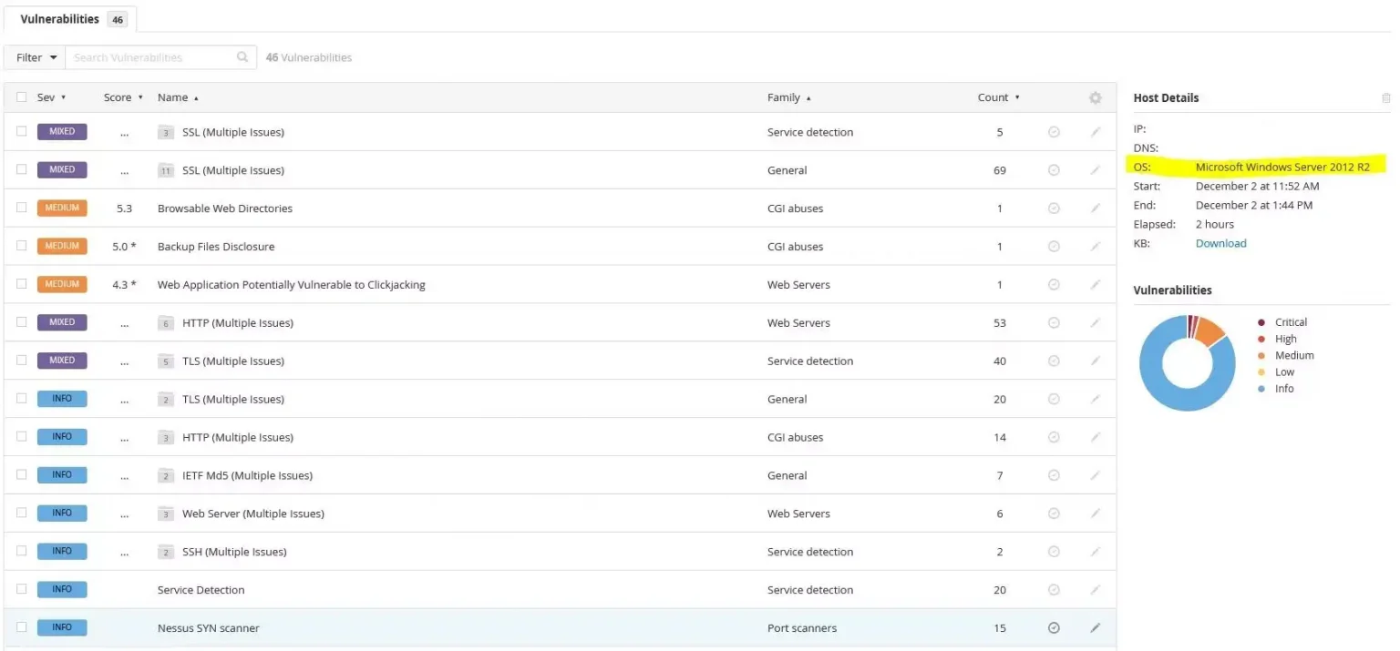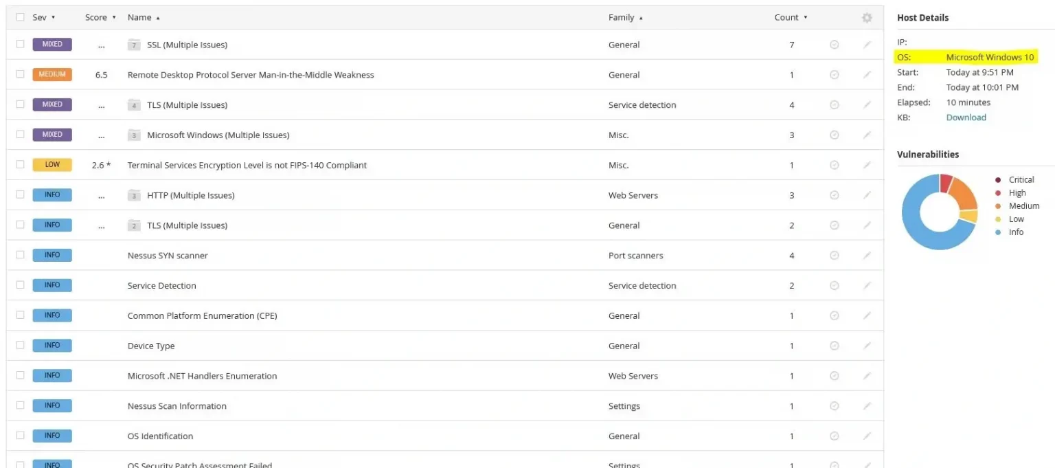 Wchodząc dalej w szczegóły rezultatu skanowania otrzymujemy informacje na temat urządzenia oraz podatności które należy sprawdzić i wyeliminować.