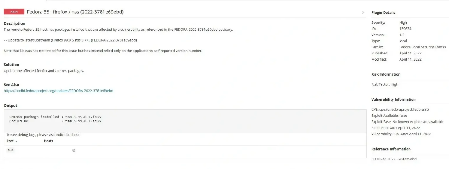 Szczegółowy opis podatności krytycznej przedstawiany przez Nessus: