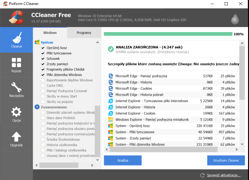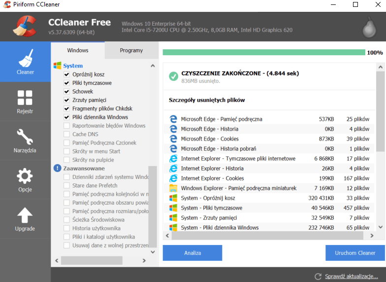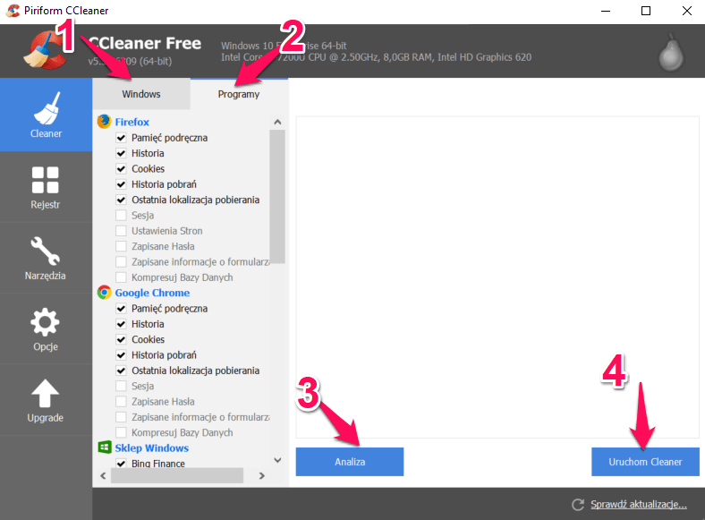 Należy zainstalować oprogramowanie CCleaner. Można je szybko pobrać ze strony producenta -> https://www.piriform.com/ccleaner/download
