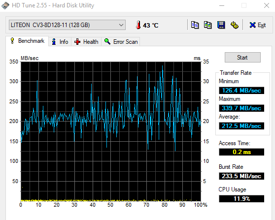 - Wynik średni na poziomie 200MB/s dla dysku SDD to zupełne minimum.