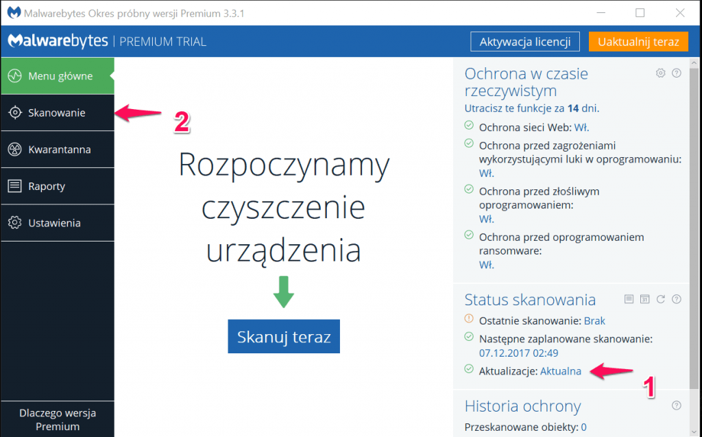 Proces oczyszczania rozpoczynamy od instalacji programu antywirusowego „Malwarebytes”.