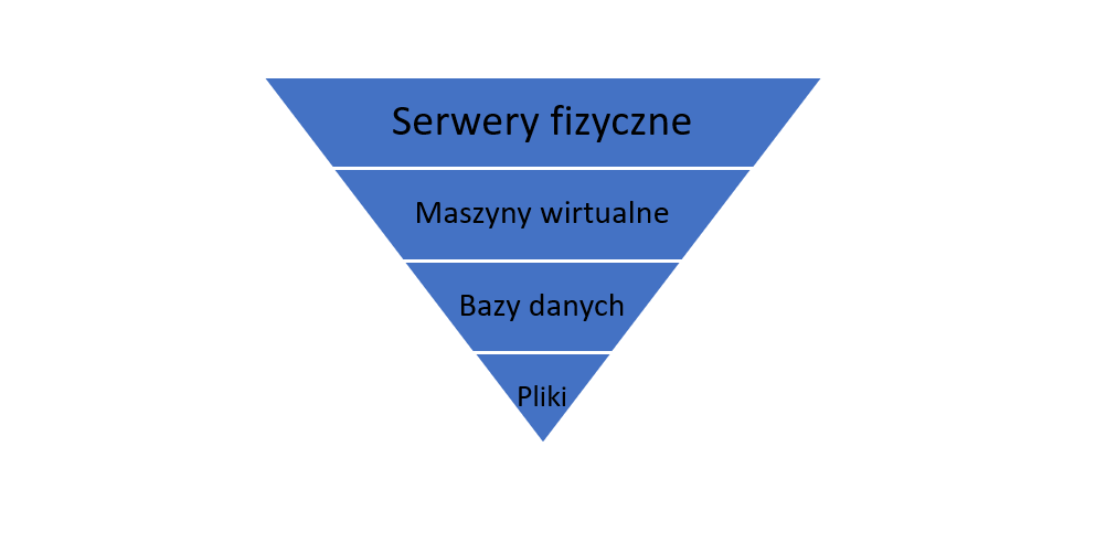 Obecne systemy kopii zapasowych pozwalają na wykonanie kopii całości serwerów, pojedynczych elementów, takich jak pliki czy bazy danych oraz usług. Na infrastrukturę IT należy spojrzeć, stosując zasadę od ogółu do szczegółu: