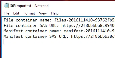 Po chwili czekania na utworzenie miejsca do importu, pojawią się dane, które kopiujemy do notatnika – będą one potrzebne w kolejnych krokach.