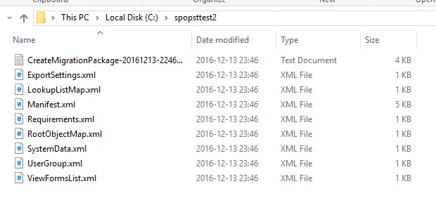 Efektem działania komendy będzie utworzenie w podanej w prarametrze OutputPackagePath lokalizacji plików txt i xml: