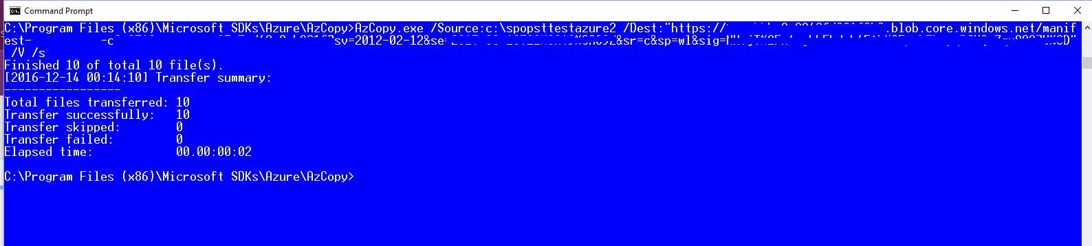 AzCopy.exe/Source:c:\spotestazure2 /Dest:https://……./V:ścieżkadofolderulogów /s