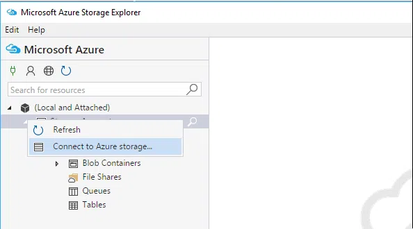 Po uruchomieniu aplikacji, dodajemy konto Azure, przy użyciu adresu SAS URL: