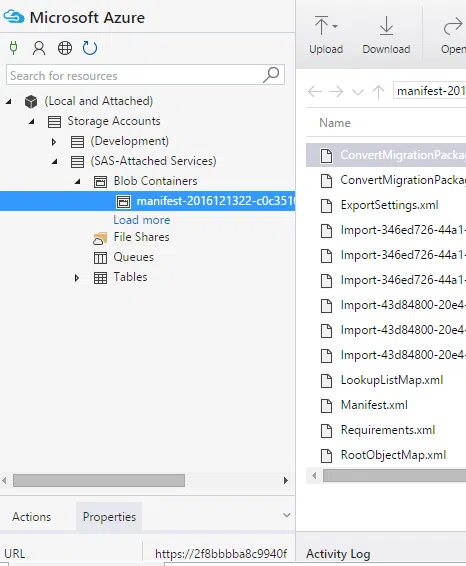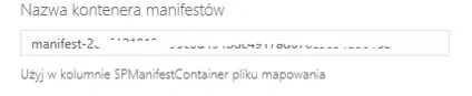 SPManifestContainer – podajemy dane zebrane na początku jako nazwa kontenera manifestów Azure: