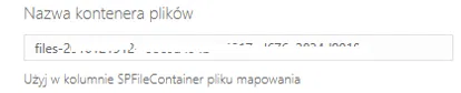 SPFileContainer – podajemy dane zebrane na początku jako nazwa kontenera plików Azure: