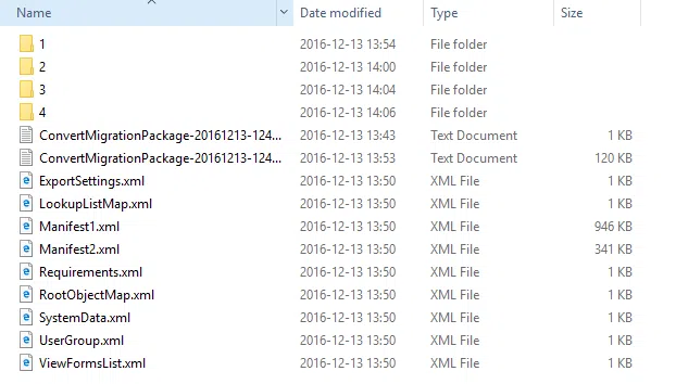 Po wykonaniu komendy, w folderze podanym w przełączniku OutputPackagePath dane zostaną podzielone na osobne paczki, ich ilość zależy od rozmiaru danych do kopiowania (na zrzucie ekranu widoczne jako foldery 1,2,3,4):
