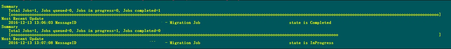 4. Sprawdzenie statusu importu plików po użyciu komendy Invoke-SPOMigrationEncryptUploadSubmit
