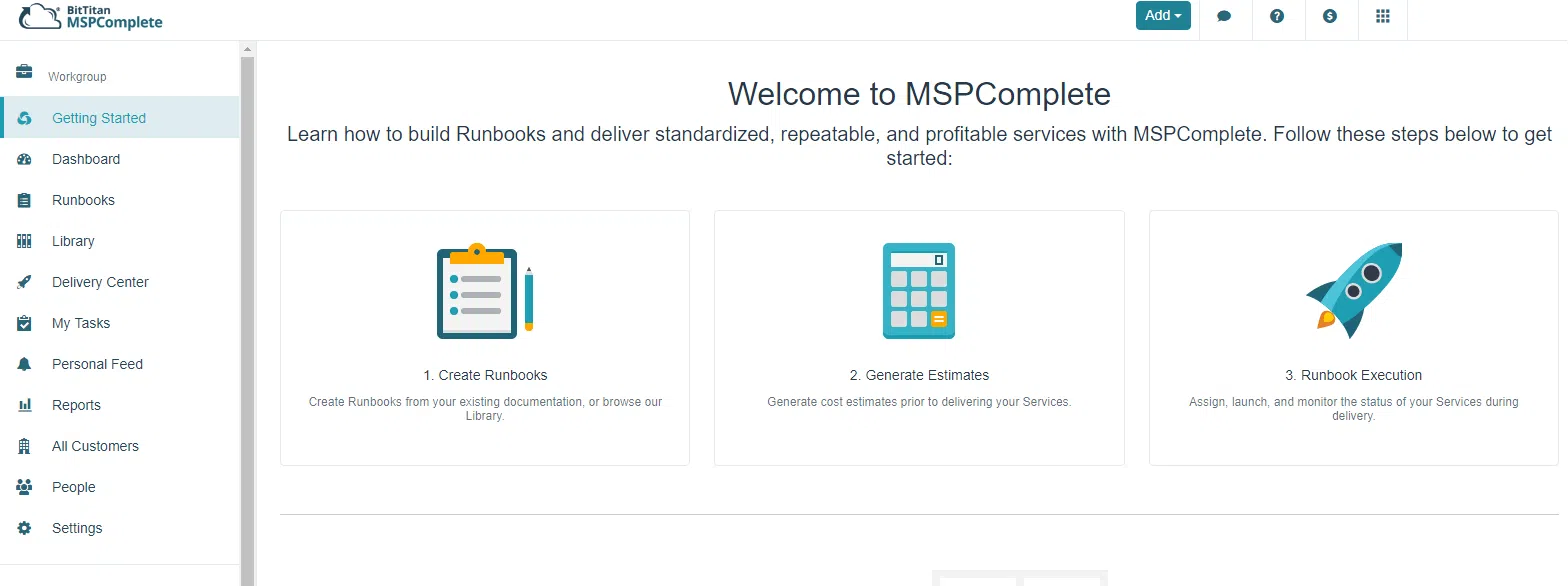 Panel MSP Complete jest ekranem głównego sterowania głównymi funkcjami oraz podglądu na przebieg procesu. Można tu zarządzać użytkownikami, komputerami, licencjami, klientami, sprawdzić raporty, wyznaczyć innym pracownikom działania do wykonania.
