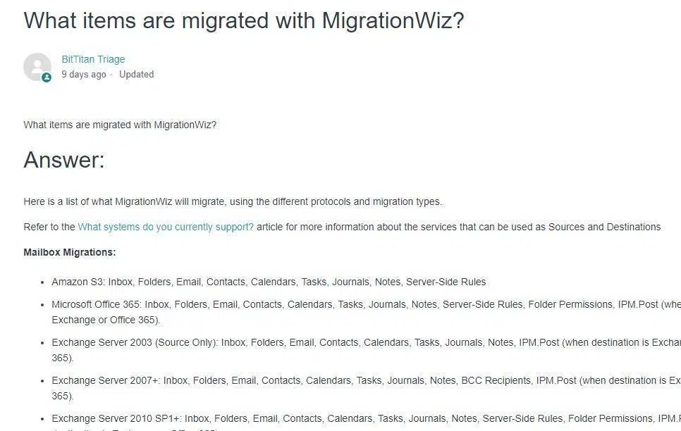Możliwe scenariusze migracji są bogate i obejmują większość, używanych zwykle przez firmy aplikacje i dane. Firma BitTitan dzięki swoim usługom pozwala na przeniesienie poczty, dokumentów i baz danych między wieloma systemami, takimi jak: