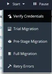 Retry errors – próba naprawy błędów. Gdy podejrzewamy, że problemy były przejściowe i zostały już usunięte, możemy użyć tej funkcji, by spróbować naprawić błędnie zmigrowane elementy.