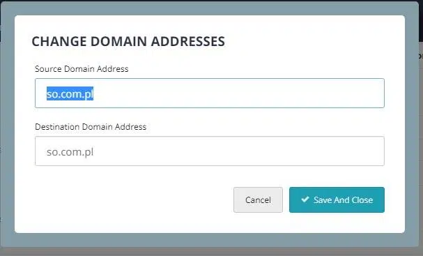Po przełączeniu ruchu pocztowego na nowy serwer, może być konieczna zmiana domeny pocztowej skrzynek źródłowych i docelowych w projektach Migration Wiz, jeżeli korzystaliśmy z tej samej domeny. Tutaj również z pomocą przychodzi BitTitan i opcja „Change Domains”, która pozwala jednym przyciskiem zmienić domeny w całym projekcie.