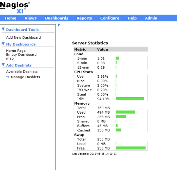 This section of the system is responsible for viewing current statistics and components. By default, Nagios displays a new tab with the current views every minute.