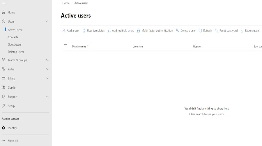 The "Setup" tab makes it easy to get started with the Admin Center. It contains a list of tasks divided into categories. From here, you can, for example, set up Active Directory synchronization, configure multi-factor authentication, or set permissions for individual administrators. It's a list worth reviewing to ensure that all key services and configurations have been included.