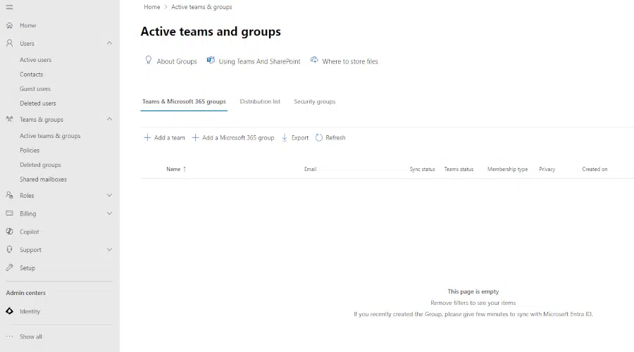 With the "Groups" option, you can configure groups, distribution lists, and shared mailboxes in Microsoft 365. As the number of users in a company grows, it's a good idea to divide them into groups, for example by work location or department.