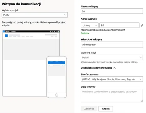 Proces projektowania witryny informacyjnej w Sharepoint Online