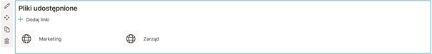 Idealnym składnikiem witryny, który będzie przydatny do utworzenia odnośników dla innych witryn z dokumentami jest składnik „Web Part” o nazwie  Szybkie Linki. Dzięki niemu można tak naprawdę umieścić na budowanej witrynie różne odnośniki. Nie muszą być to wyłącznie elementy z obrębu naszego tenantu Microsoft, ale i źródła zewnętrzne. W tym przypadku należy umieścić na nim linki do witryn zawierających pliki, np. Marketing, Zarząd.