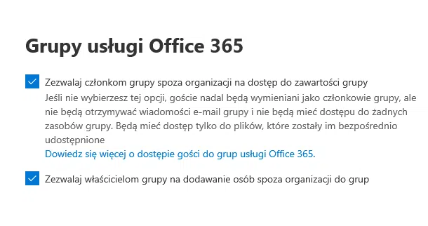 - Grupy Office 365 – globalne ustawienie dostępu dla Teams i grup Office 365 dla kont typu „gość”