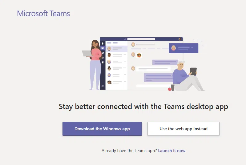 Jeżeli chcemy by osoba spoza firmy uczestniczyła na spotkaniu audio/video z użyciem Teams, również wystarczy podać jego adres mailowy podczas procesu tworzenia zaproszenia na spotkanie. Po wysłaniu zaproszenia, użytkownik otrzyma maila za zaproszeniem. Po kliknięciu w link, zostanie przekierowany do strony Teams. Ma wówczas opcję skorzystania z przeglądarki lub zainstalowania darmowej aplikacji.