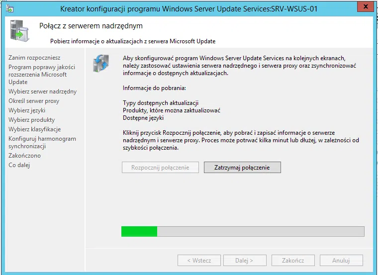Po tych krokach mamy wstępnie przygotowany serwer WSUS do pracy. Następnym krokiem jest opublikowanie go w organizacji i zatwierdzenie aktualizacji po zsynchronizowaniu z serwerem nadrzędnym.